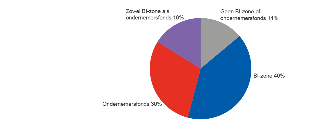 Van de 102 gemeenten met een ondernemersfonds kennen 33 gemeenten ook een BI-zone.