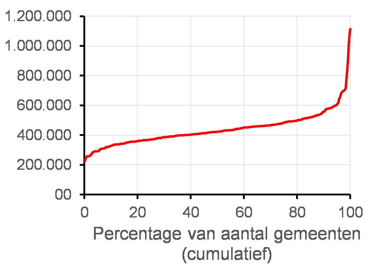 Onder de kaart en de tekst vindt u bij veel kaarten nog een figuur met een rode lijn. In deze figuur zijn alle gemeenten gerangschikt van laagste naar hoogste waarde.
