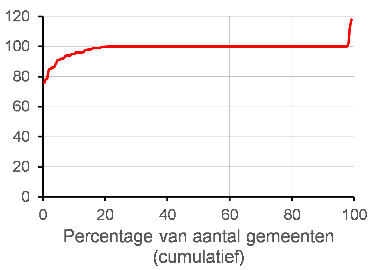 Onder de kaart en de tekst vindt u bij veel kaarten nog een figuur met een rode lijn. In deze figuur zijn alle gemeenten gerangschikt van laagste naar hoogste waarde.