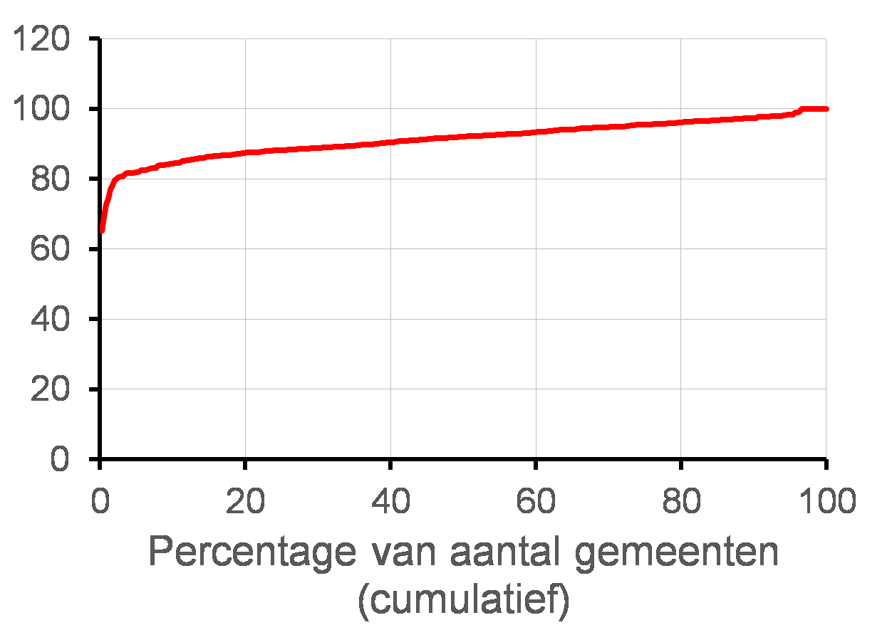 Onder de kaart en de tekst vindt u bij veel kaarten nog een figuur met een rode lijn. In deze figuur zijn alle gemeenten gerangschikt van laagste naar hoogste waarde.