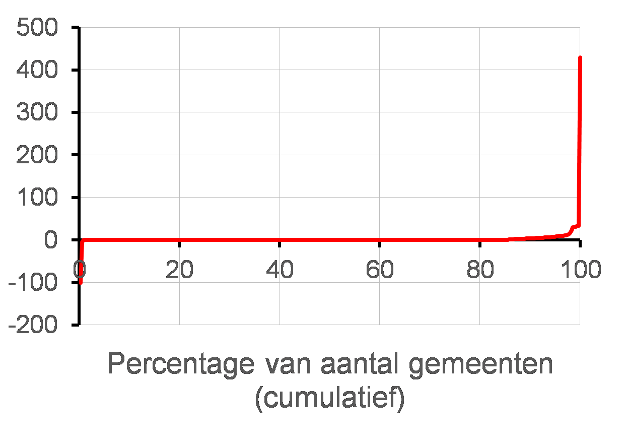 Onder de kaart en de tekst vindt u bij veel kaarten nog een figuur met een rode lijn. In deze figuur zijn alle gemeenten gerangschikt van laagste naar hoogste waarde.