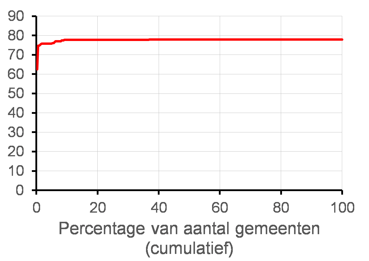Onder de kaart en de tekst vindt u bij veel kaarten nog een figuur met een rode lijn. In deze figuur zijn alle gemeenten gerangschikt van laagste naar hoogste waarde.