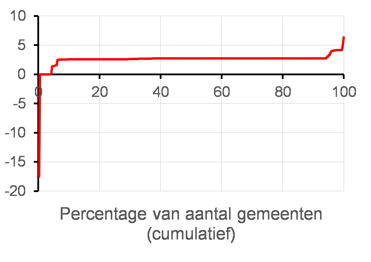 Onder de kaart en de tekst vindt u bij veel kaarten nog een figuur met een rode lijn. In deze figuur zijn alle gemeenten gerangschikt van laagste naar hoogste waarde.