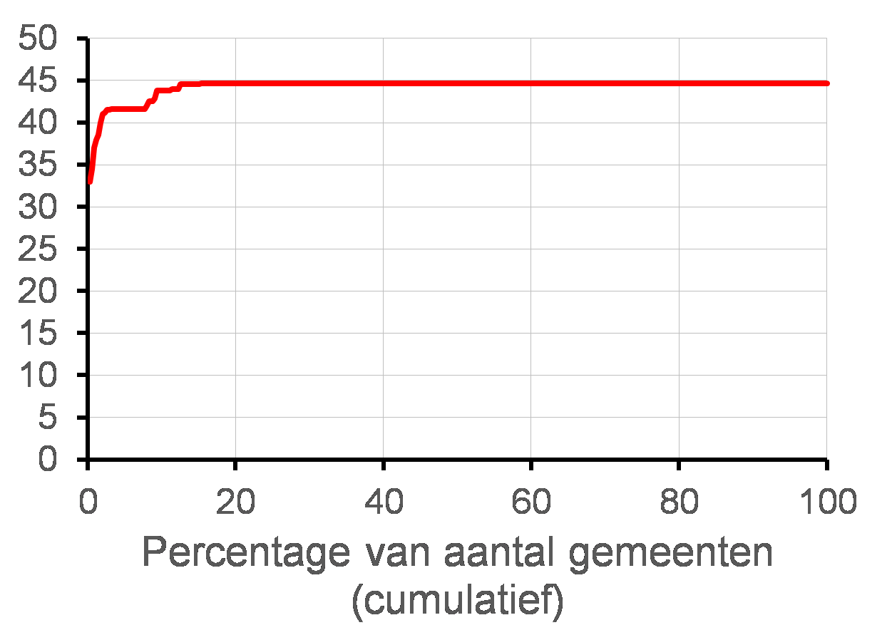 Onder de kaart en de tekst vindt u bij veel kaarten nog een figuur met een rode lijn. In deze figuur zijn alle gemeenten gerangschikt van laagste naar hoogste waarde.