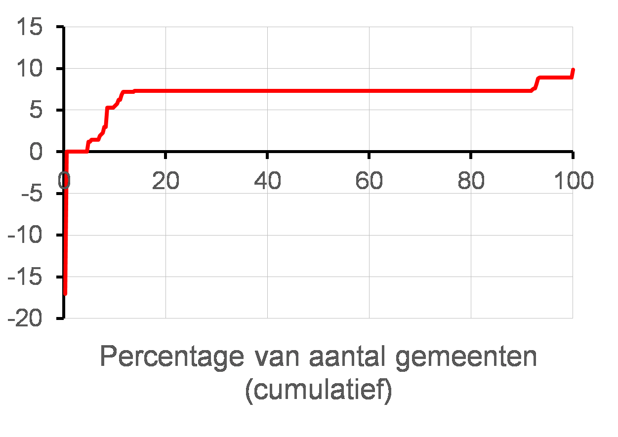 Onder de kaart en de tekst vindt u bij veel kaarten nog een figuur met een rode lijn. In deze figuur zijn alle gemeenten gerangschikt van laagste naar hoogste waarde.