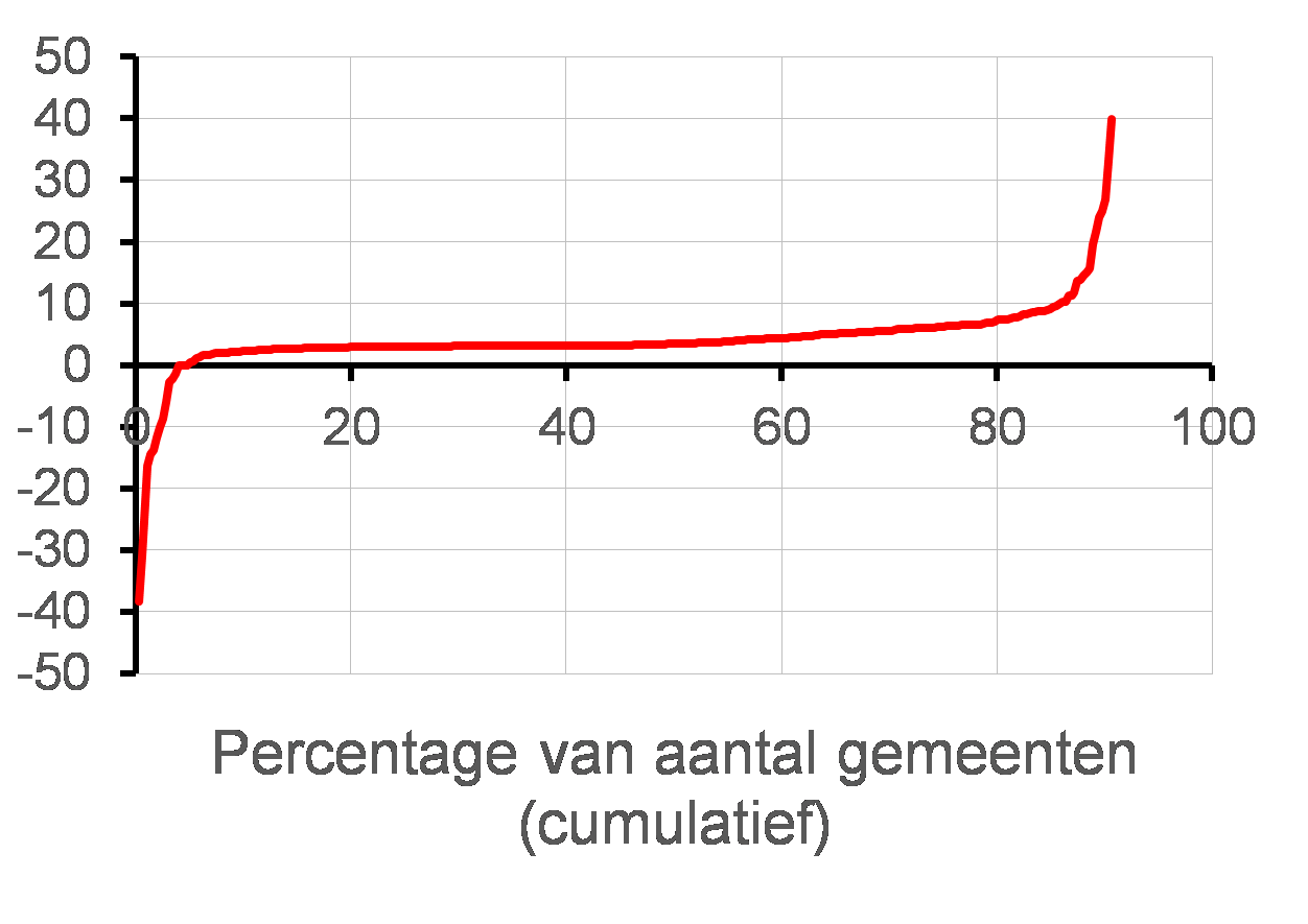 Onder de kaart en de tekst vindt u bij veel kaarten nog een figuur met een rode lijn. In deze figuur zijn alle gemeenten gerangschikt van laagste naar hoogste waarde.