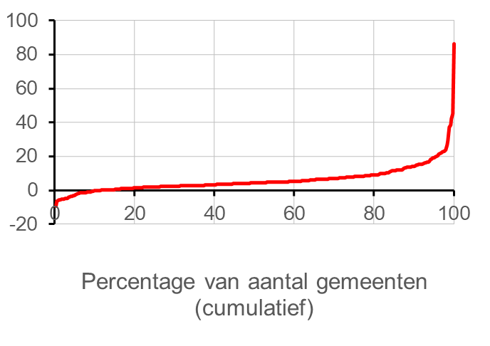 Onder de kaart en de tekst vindt u bij veel kaarten nog een figuur met een rode lijn. In deze figuur zijn alle gemeenten gerangschikt van laagste naar hoogste waarde.