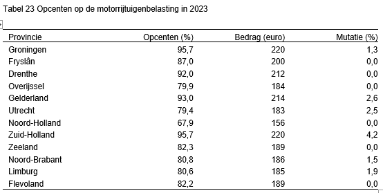 Noord-Holland is net als vorig jaar het goedkoopst voor de autobezitter. Hier betaalt de eigenaar van onze voorbeeldauto 156 euro. In Groningen en Zuid-Holland betaalt de automobilist het meest: 220 euro (zie tabel 23).