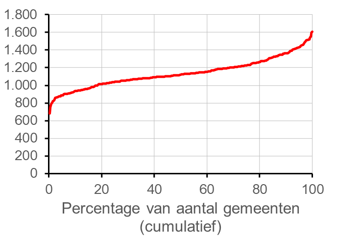 Figuur bij kaart 60 Totale decentrale lasten huurder gerangschikt van laagste naar hoogste