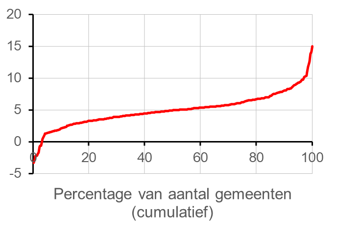 Figuur bij kaart 63 Mutatie totale decentrale lasten eigenaar-bewoner gerangschikt van laagste naar hoogste