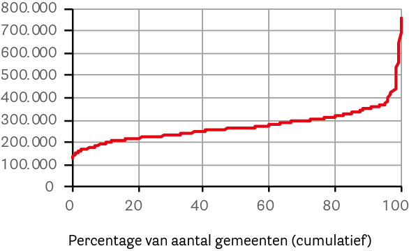 Onder de kaart en de tekst vindt u bij veel kaarten nog een figuur met een rode lijn. In deze figuur zijn alle gemeenten gerangschikt van laagste naar hoogste waarde.