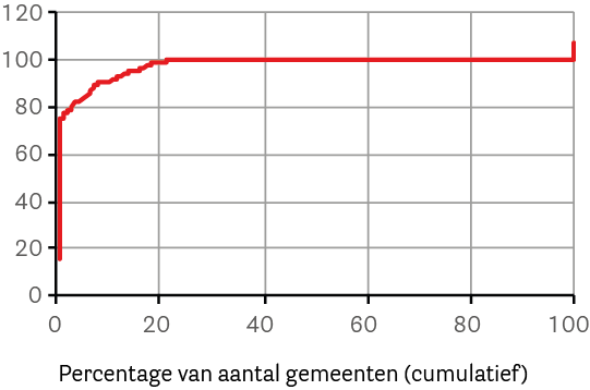 Onder de kaart en de tekst vindt u bij veel kaarten nog een figuur met een rode lijn. In deze figuur zijn alle gemeenten gerangschikt van laagste naar hoogste waarde.
