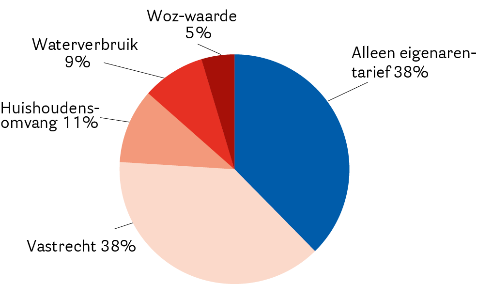 Ook bij de gebruikersheffing gaat het vaak om een vast bedrag (kaart 21). Verder kan het tarief zijn gekoppeld aan het waterverbruik, de huishoudensomvang of de woz-waarde van de woning. In 2004 was Wijchen de enige gemeente die het gebruikerstarief koppelde aan de woz-waarde. Nu doen 8 gemeenten dat.
