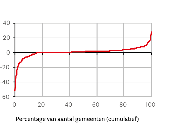 Onder de kaart en de tekst vindt u bij veel kaarten nog een figuur met een rode lijn. In deze figuur zijn alle gemeenten gerangschikt van laagste naar hoogste waarde.