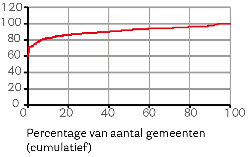 Onder de kaart en de tekst vindt u bij veel kaarten nog een figuur met een rode lijn. In deze figuur zijn alle gemeenten gerangschikt van laagste naar hoogste waarde.