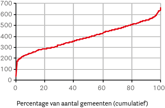 Onder de kaart en de tekst vindt u bij veel kaarten nog een figuur met een rode lijn. In deze figuur zijn alle gemeenten gerangschikt van laagste naar hoogste waarde.