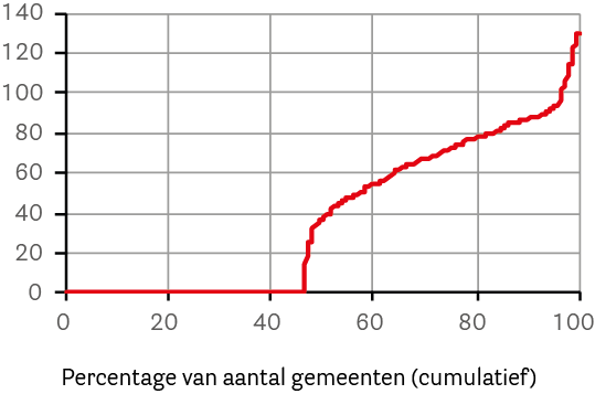 Onder de kaart en de tekst vindt u bij veel kaarten nog een figuur met een rode lijn. In deze figuur zijn alle gemeenten gerangschikt van laagste naar hoogste waarde.
