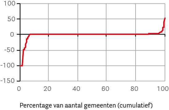 Onder de kaart en de tekst vindt u bij veel kaarten nog een figuur met een rode lijn. In deze figuur zijn alle gemeenten gerangschikt van laagste naar hoogste waarde.