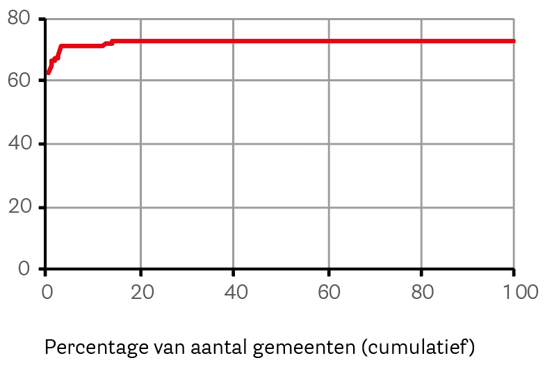 Onder de kaart en de tekst vindt u bij veel kaarten nog een figuur met een rode lijn. In deze figuur zijn alle gemeenten gerangschikt van laagste naar hoogste waarde.
