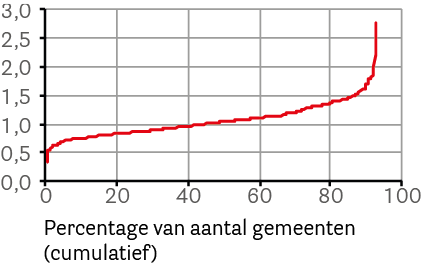 Onder de kaart en de tekst vindt u bij veel kaarten nog een figuur met een rode lijn. In deze figuur zijn alle gemeenten gerangschikt van laagste naar hoogste waarde.
