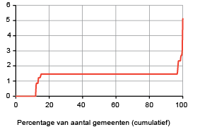 Onder de kaart en de tekst vindt u bij veel kaarten nog een figuur met een rode lijn. In deze figuur zijn alle gemeenten gerangschikt van laagste naar hoogste waarde.