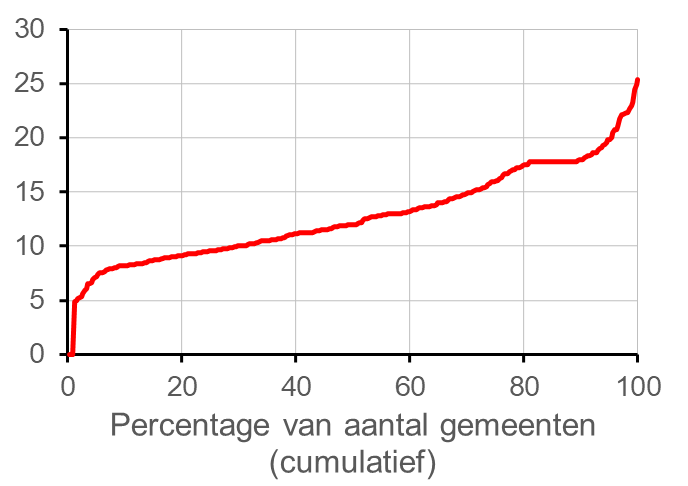 Onder de kaart en de tekst vindt u bij veel kaarten nog een figuur met een rode lijn. In deze figuur zijn alle gemeenten gerangschikt van laagste naar hoogste waarde.