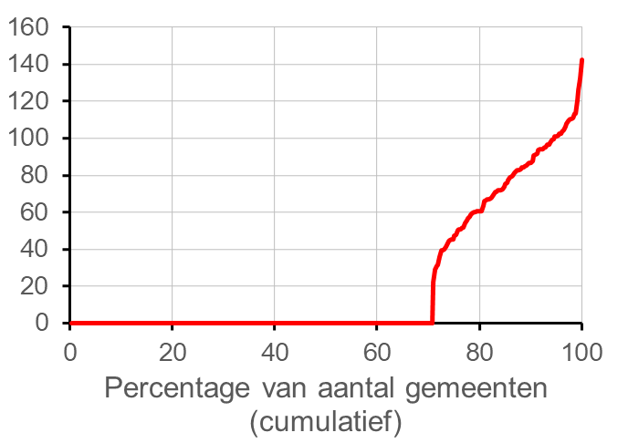 Onder de kaart en de tekst vindt u bij veel kaarten nog een figuur met een rode lijn. In deze figuur zijn alle gemeenten gerangschikt van laagste naar hoogste waarde.