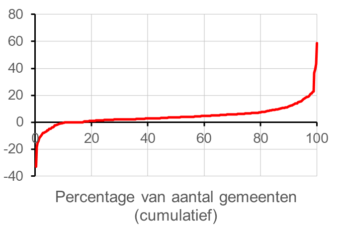 Onder de kaart en de tekst vindt u bij veel kaarten nog een figuur met een rode lijn. In deze figuur zijn alle gemeenten gerangschikt van laagste naar hoogste waarde.