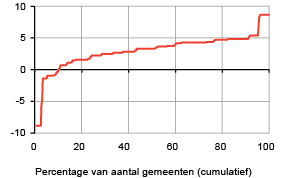 [i] De correlatiecoëfficiënt is 69 procent. Het verband is significant (t=-4,1). Als het kostenaandeel van ingezetenen 1 procentpunt hoger is, dan is het kostenaandeel van gebouwd 1,2 procentpunt lager.