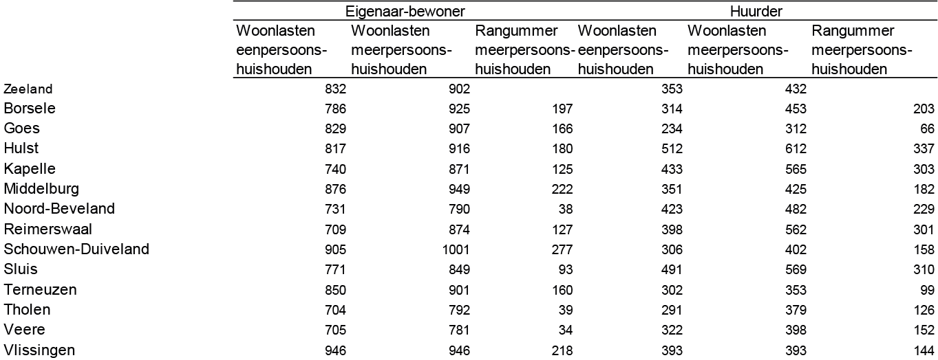 Hier vindt u een overzicht van de woonlasten per gemeente voor eigenaar-bewoners en huurders in de provincie Zeeland.