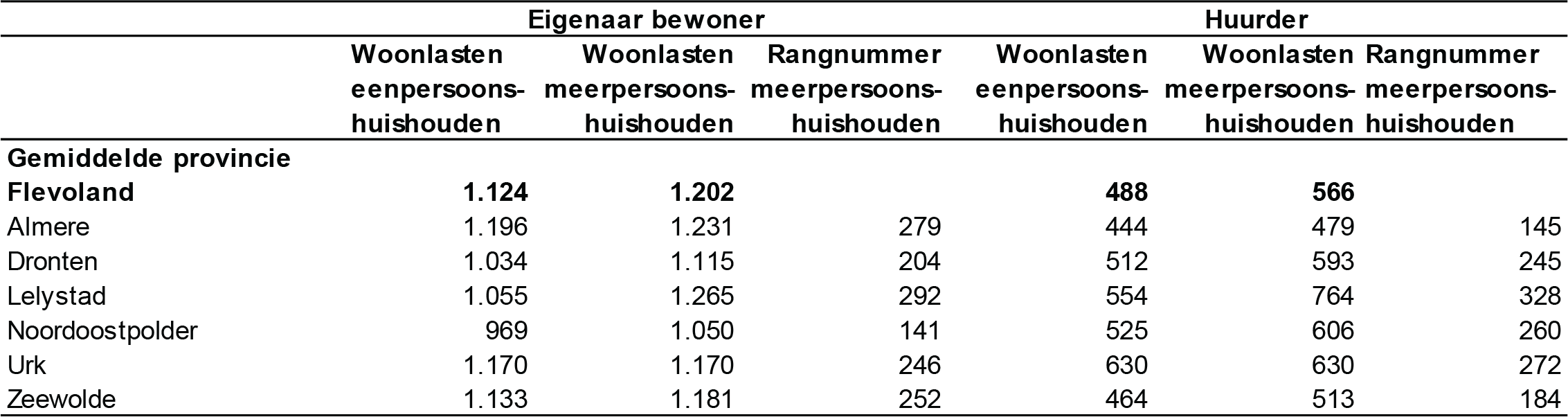 Hier vindt u een overzicht van de woonlasten per gemeente voor eigenaar-bewoners en huurders in de provincie Flevoland.